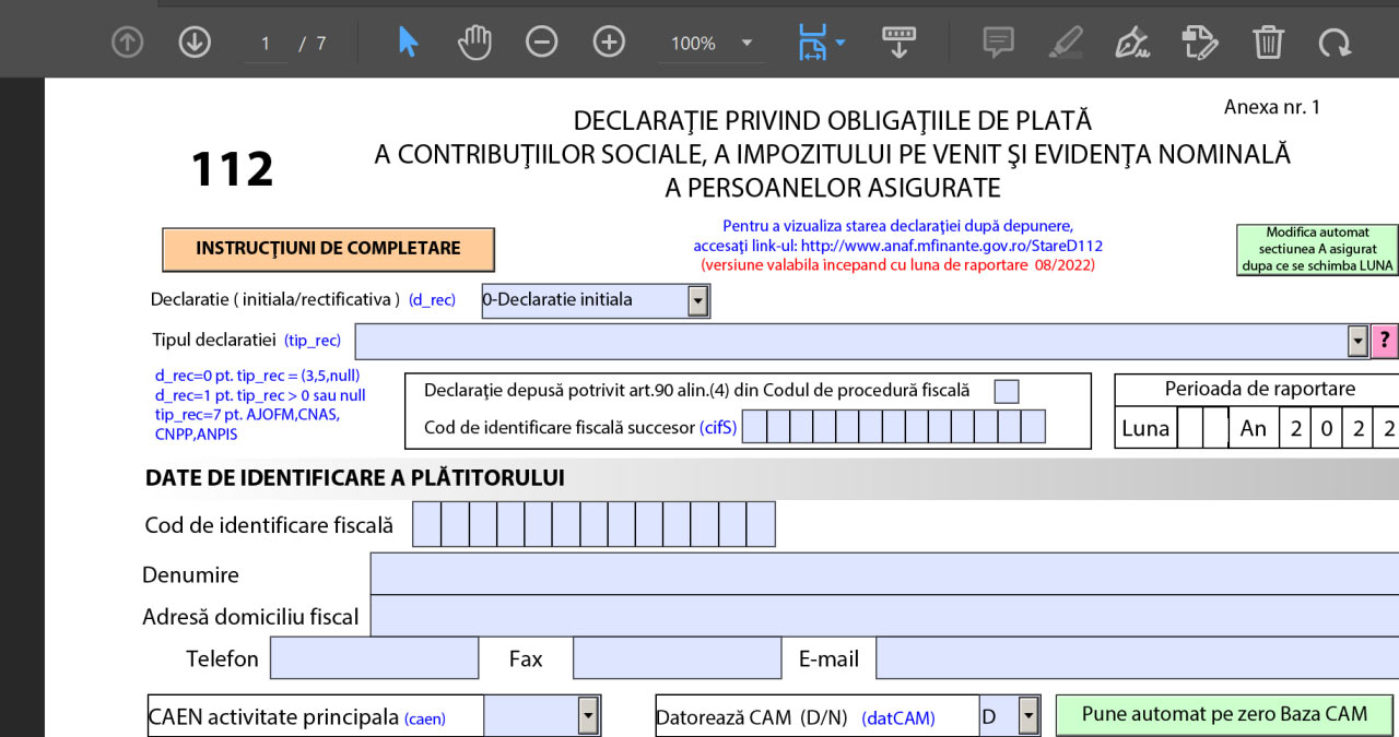 - Agenția Națională de Administrare Fiscală (ANAF) – Reglementări Declarația 112